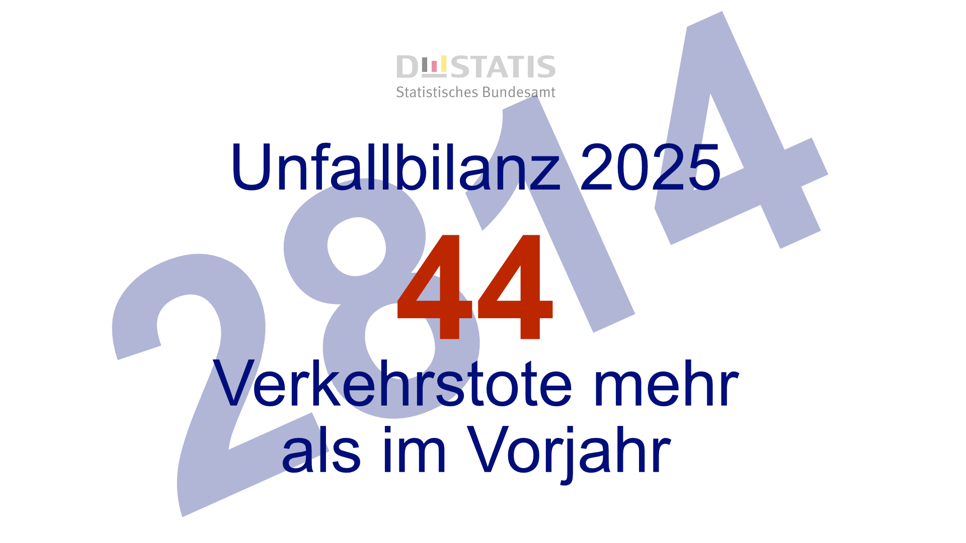 Die Zahl der Unfälle mit Personenschaden ist um 1 % gegenüber dem Vorjahr gestiegen. Die Zahl der Schwerverletzten um 4 % gesunken. Im Jahr 2025 sind in Deutschland 2 814 Menschen bei Unfällen im Straßenverkehr ums Leben gekommen. Wie das Statistische Bundesamt (Destatis) nach vorläufigen Ergebnissen weiter mitteilt, waren das 2 % oder 44 Todesopfer mehr als im Jahr 2024 (2.770 Todesopfer).