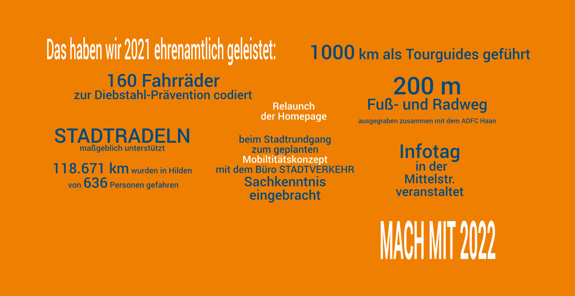 Liebe LeserInnen! Bestimmt wurde der eine oder die andere in den letzten Tagen mit Fahrradzubehör beschenkt und freut sich schon auf gutes Wetter zum Ausprobieren im neuen Jahr. Wie auch immer es in 2022 mit den Corona-Beschränkungen weitergehen wird, mit dem Fahrrad ist man dabei auch weiterhin hygienisch unbedenklich und gesund unterwegs. In diesem Sinne ein gesundes und aktives neues Jahr wünscht das Newsletter-Team des ADFC im neanderland |