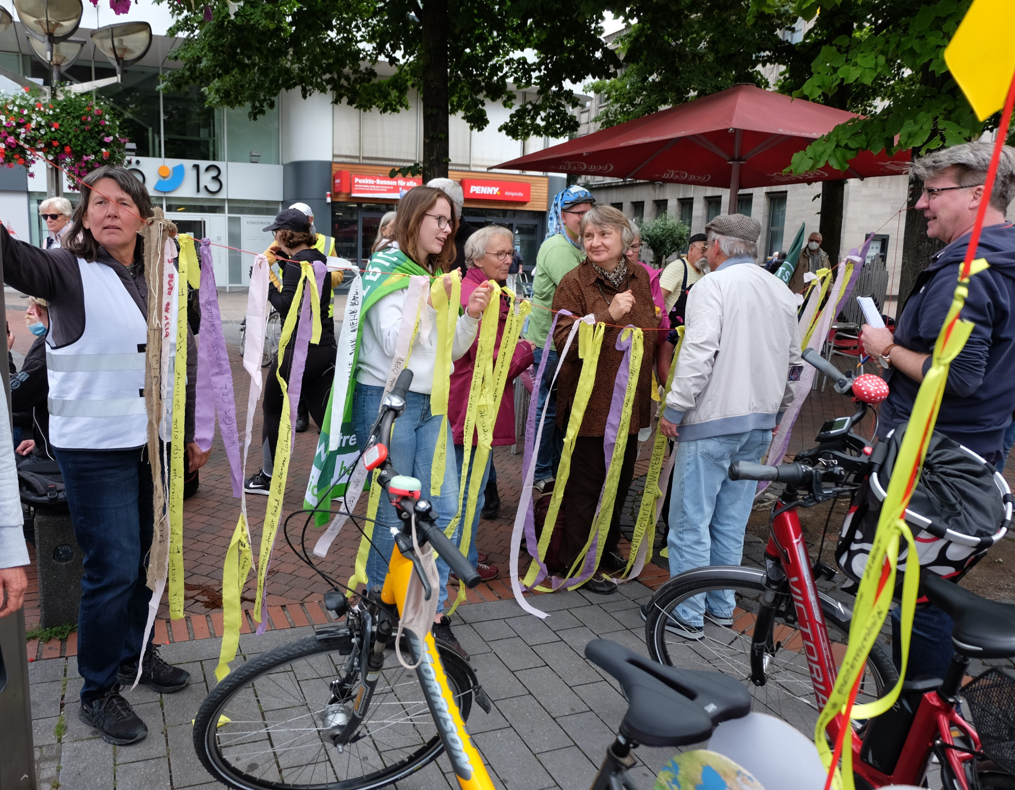 Auch Ende August und im September steht in Duisburg einiges an: die Fahrraddemo der Parents for Future mit ihren Klimabändern, die Fahrraddemo „Ohne Kerosin nach Berlin“, die Duisburger Radwanderung und die Kidical Mass. Und natürlich unserer Radtouren.